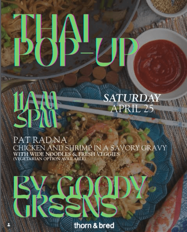 Hey people! Thai pop-up is back this weekend, bring the fam. @goody_greens will be slingin’ plates 11am til sold out. See you soon! xx 🌶️